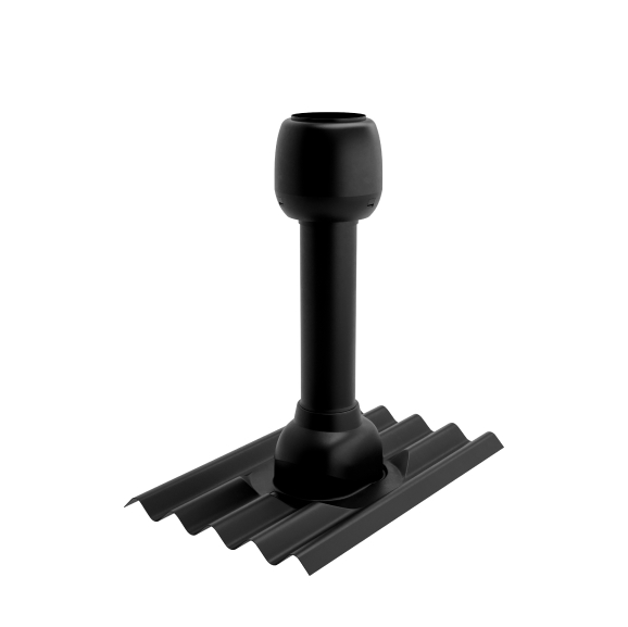 Чёрная вентиляционная труба для Ондулина Смарт из светостойкого полипропилена обеспечивает выпуск воздуха из неутеплённых помещений и подкровельного пространства.